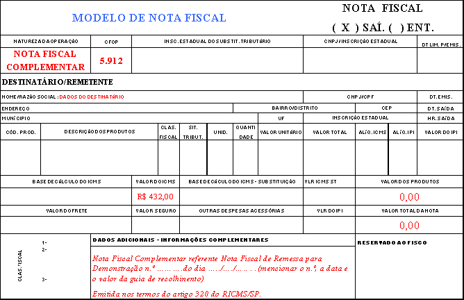 Por ex.: Uma determinada mercadoria foi remetida para demonstração