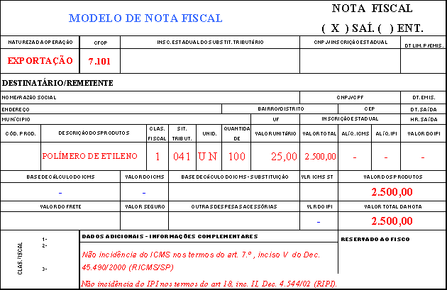 CFOP : 7.101 (Produtos do Estabelecimento)