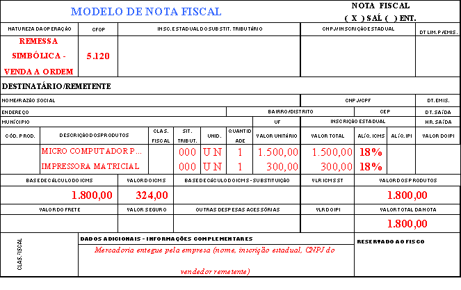 1.26 – VENDA A ORDEM - EMISSÃO DE NOTA FISCAL PELO ADQUIRENTE ORIGINÁRIO EM FAVOR DO DESTINATÁRIO COM DESTAQUE DOS IMPOSTOS.