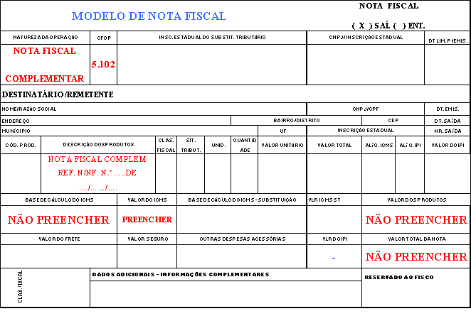 1.36 – NOTA FISCAL COMPLEMENTAR
