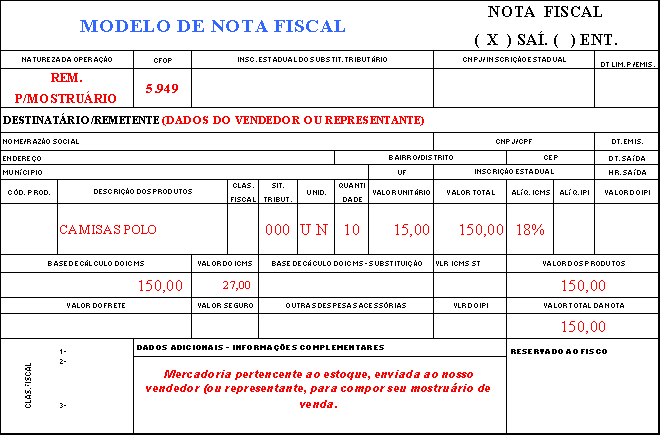 As remessas para mostruário deverão obedecer as seguintes normas quanto a emissão de nota fiscal :