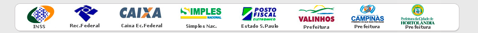 INSS Receita Federal Caixa Econômica Federal Simples Nacional Posto Fiscal Prefeitura de Valinhos Prefeitura de Campinas Prefeitura de Hortolândia